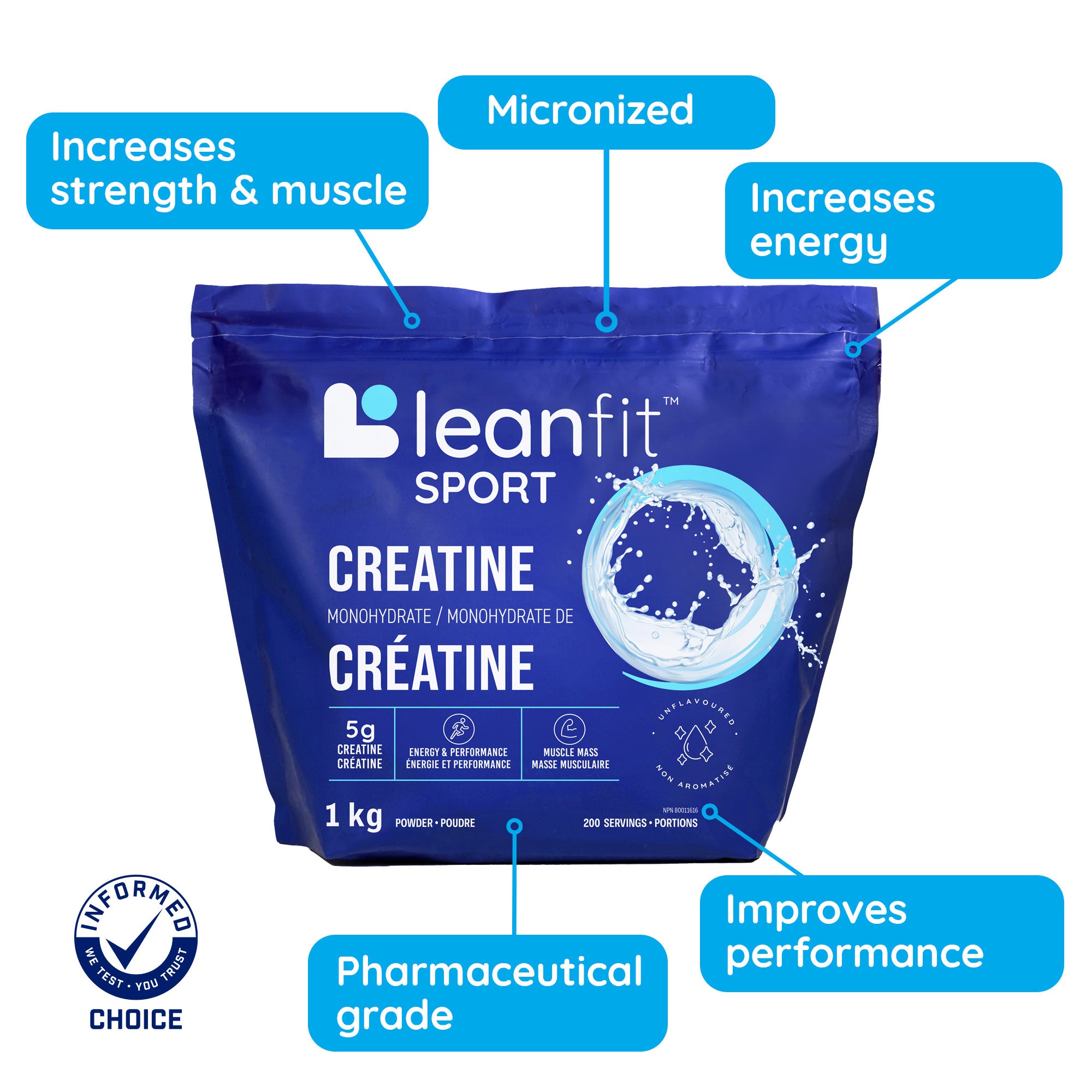 LEANFIT SPORT CREATINE MONOHYDRATE™ Unflavoured 1kg